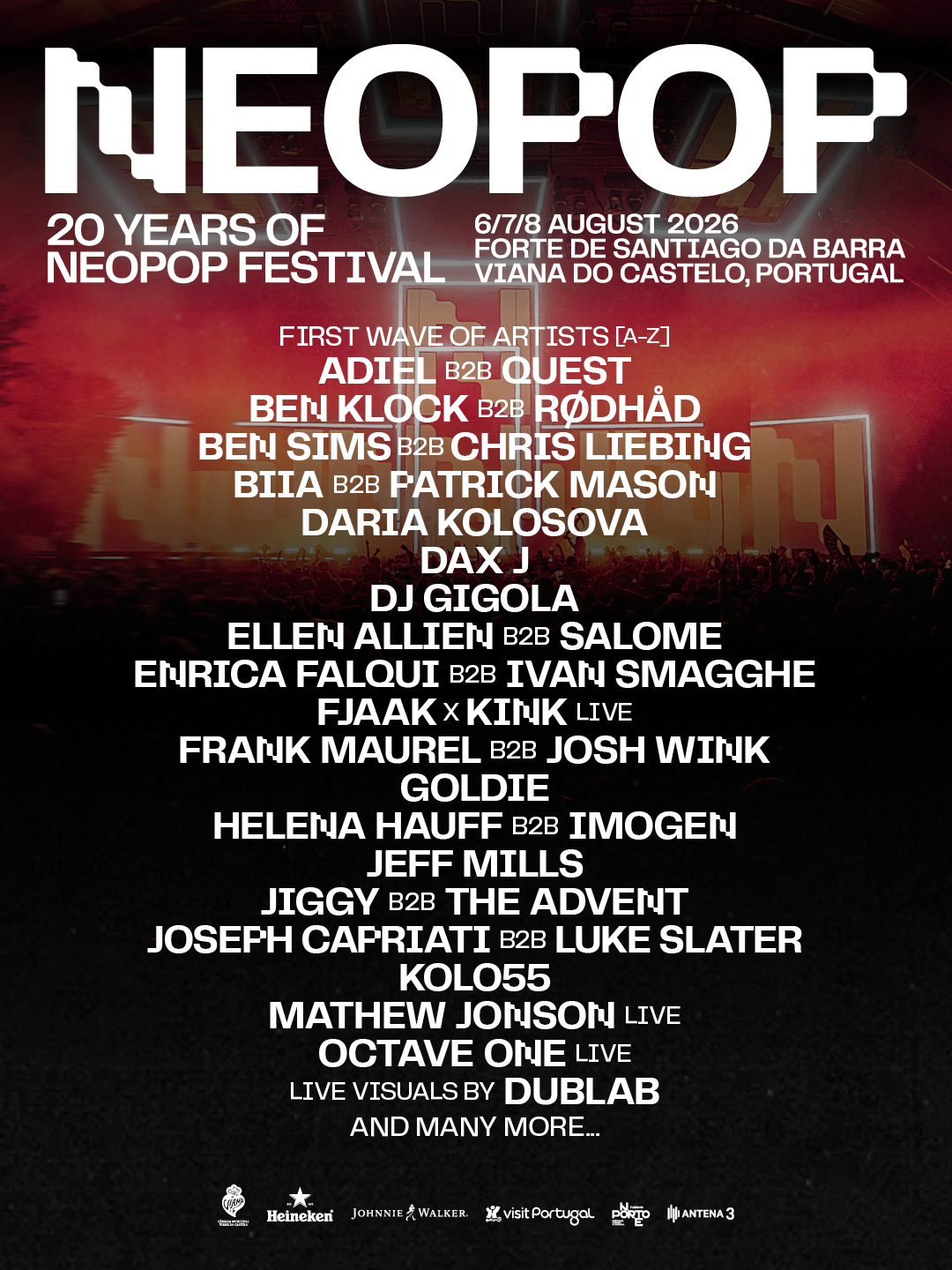 Il y a 20 ans, NEOPOP Festival posait ses platines dans la forteresse de Viana do Castelo. Depuis, le festival est devenu l'un des rendez-vous culte de la scène techno mondiale. Pour son vingtième anniversaire, il revient plus grand, plus fort, plus déterminé que jamais.